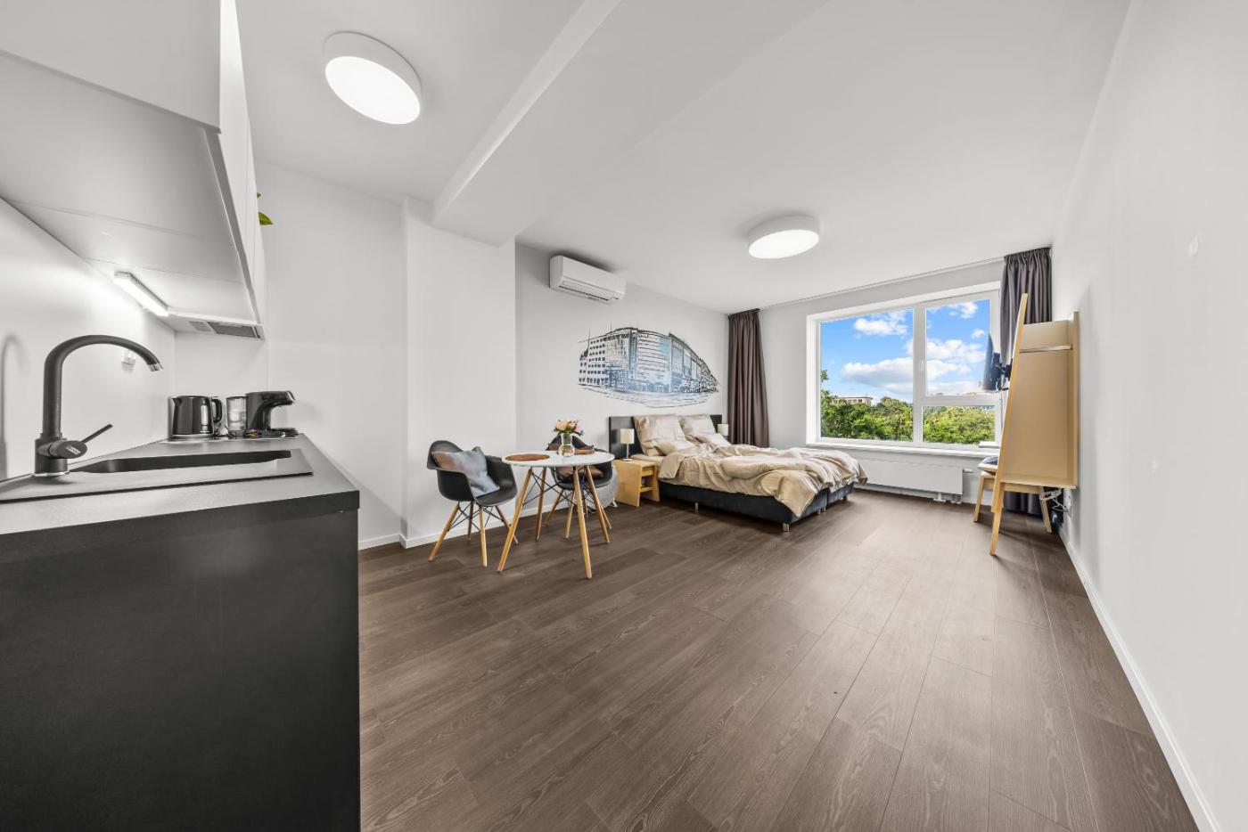 One-Bedroom Apartment. The apartments kitchen is available for cooking and storing food. The apartment offers air conditioning, a washing machine, heating and a flat-screen TV. The unit has 1 bed.