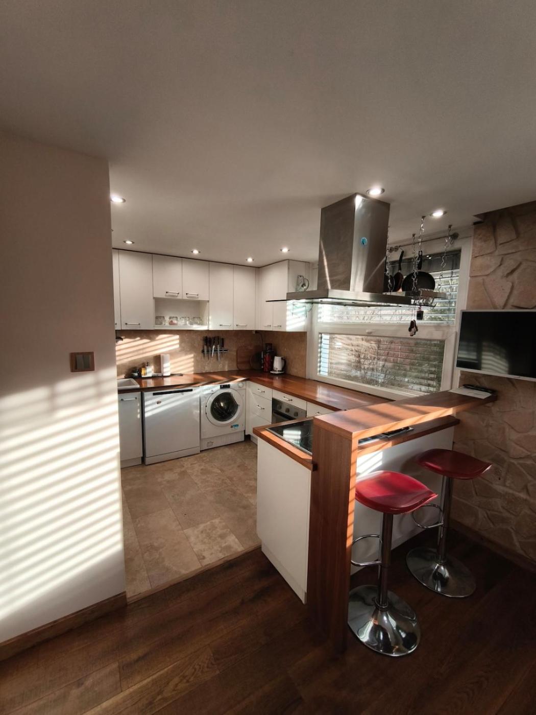 One-Bedroom Apartment. This apartments standout feature is the sauna. Guests will find a stovetop, a refrigerator, a dishwasher and kitchenware in the well-equipped kitchen. The apartment also features a barbecue. The apartment offers air conditioning, a washing machine, a tea and coffee maker, a dining area and a flat-screen TV with streaming services. The unit has 1 bed.