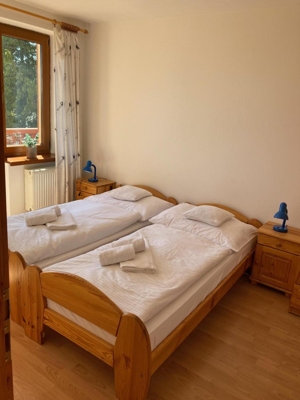Family Room with Balcony. Room comprising 2 bedrooms, one with a double bed and a bathroom with a shower and another with a double bed and a toilet. One of the bedrooms also come equipped with satellite TV and views of the garden and the Tatra mountains. Free WiFi is provided as well. ;