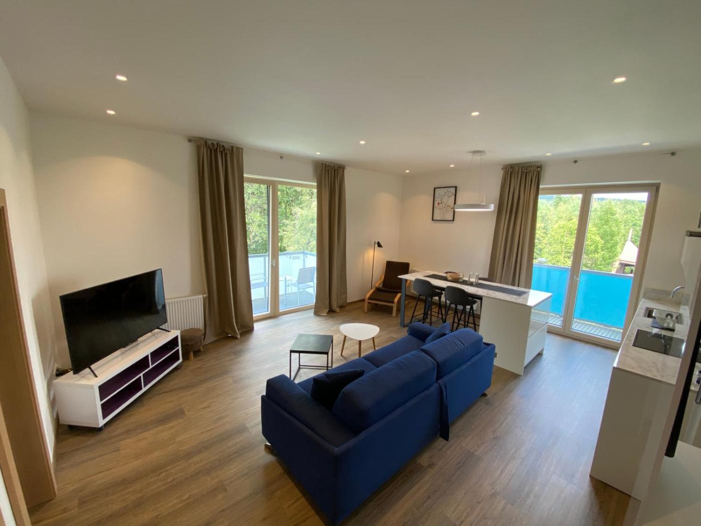 Apartment 2.1. This apartment comes with 1 living room, 1 separate bedroom and 1 bathroom with a walk-in shower and free toiletries. Guests can make meals in the kitchen that features a stovetop, a refrigerator, kitchenware and a microwave. Boasting a balcony with mountain views, this apartment also features soundproof walls and a flat-screen TV with cable channels. The unit has 2 beds. ;