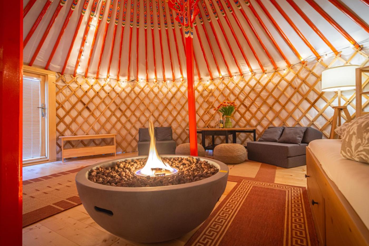 The luxury tent has a barbecue, outdoor fireplace and sun terrace.